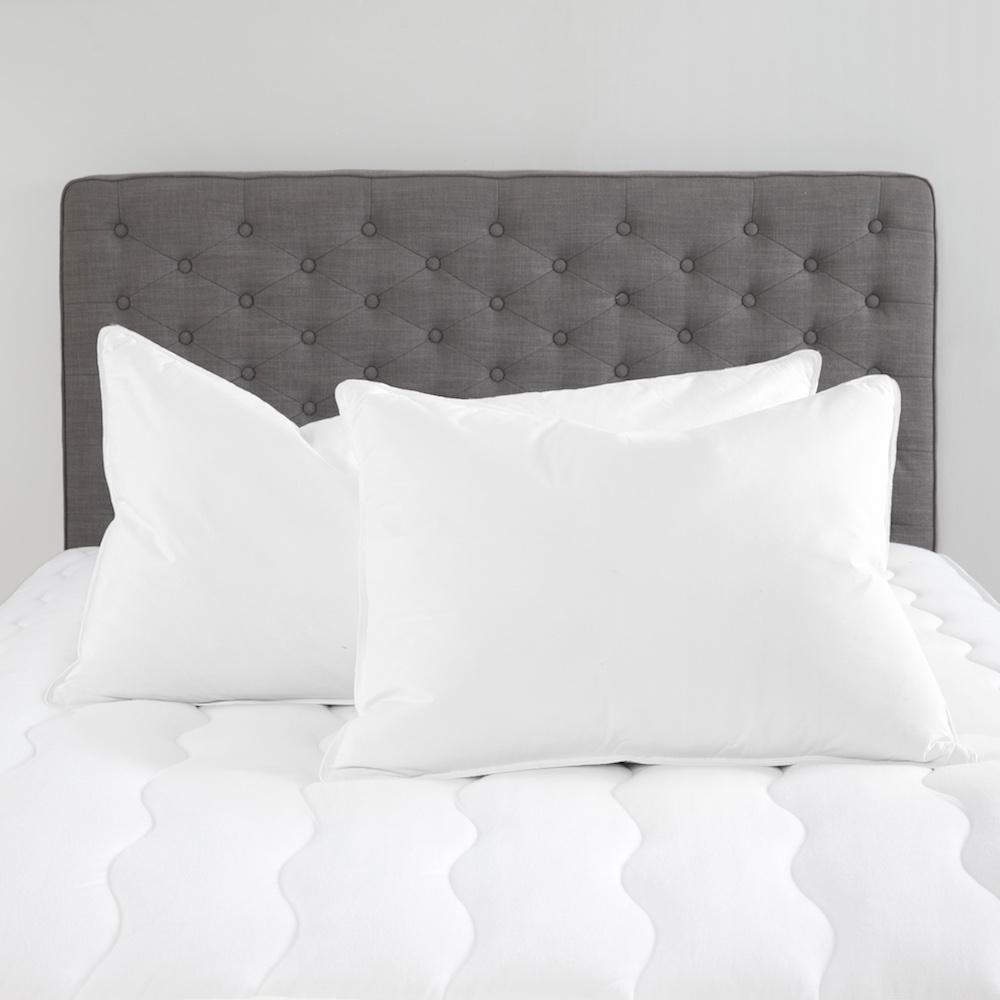 Soft, hypoallergenic and down, our Chamber Down Pillows are best for stomach and back sleepers, offering cushiony softness that molds to your head. Our three-chamber pillows were created with two outer chambers filled with hypoallergenic slick polyester surrounding an inner chamber filled with sterilized natural feathers. These pillows are the only hypoallergenic, down ones we offer, giving sleepers the best of both worlds. Learn more about our pillows.